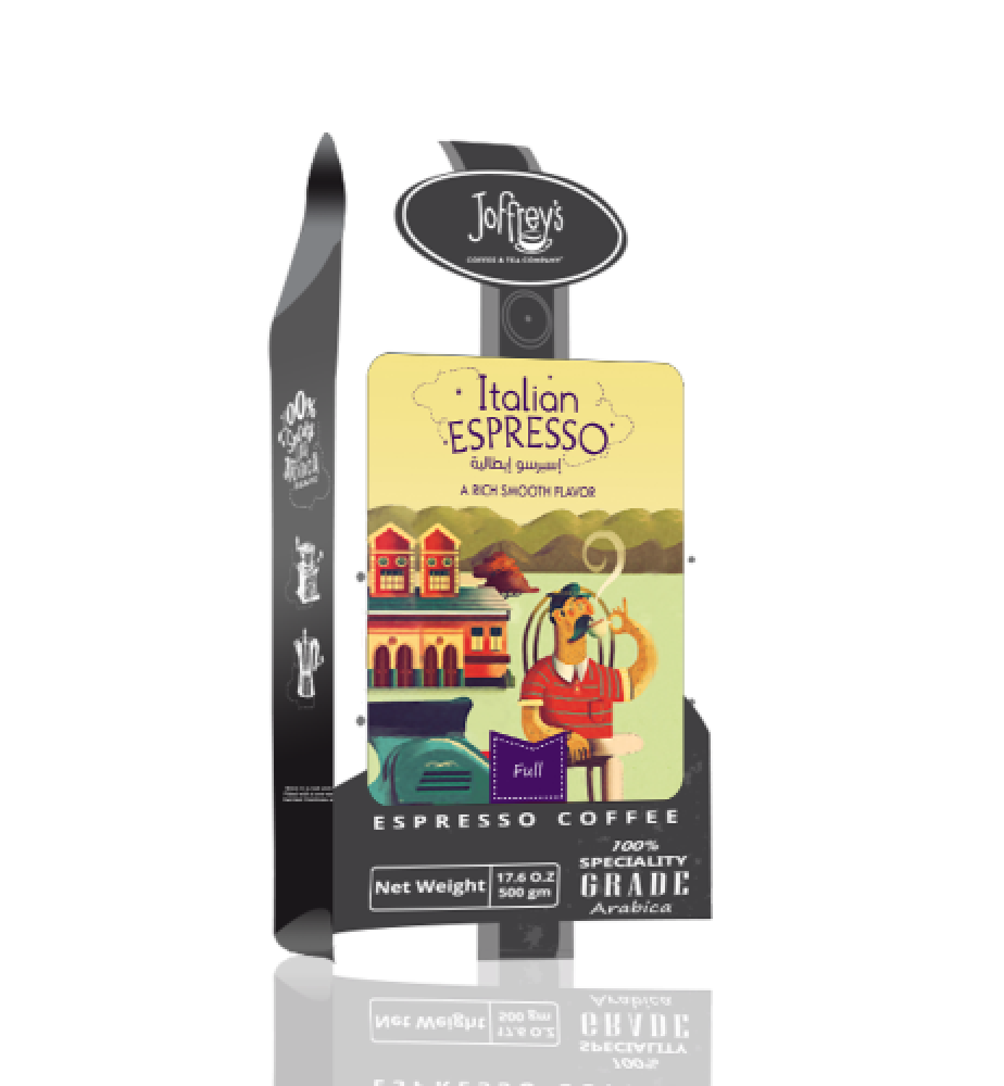 - استمتع بتجربة إسبريسو إيطالية فريدة تحفة فنية من النكهات الغنية التي تلامس الروح وتنعش الحواس كل رشفة تأخذك في رحلة إلى قلب إيطاليا حيث يلتقي التراث العريق بلمسة محمصة "جو فريز" العصرية، لتبدأ يومك بحيوية أو تختتمه بلحظات من الاسترخاء العميق.